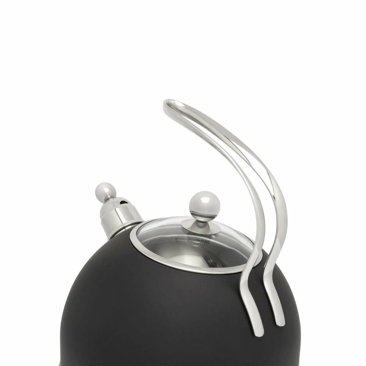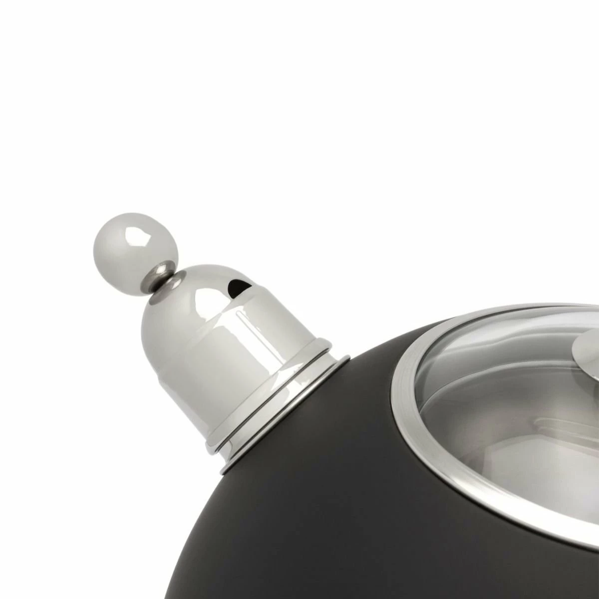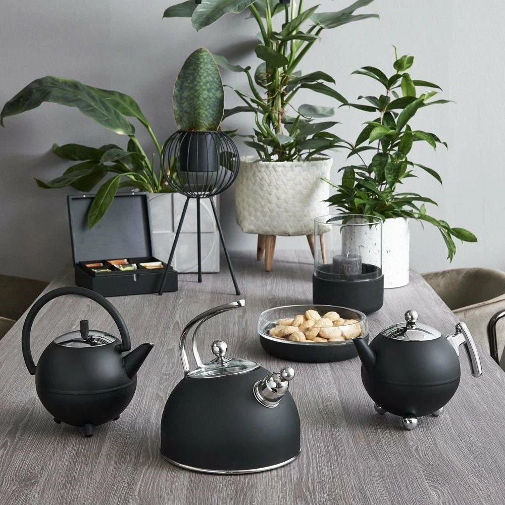 Prepare the perfect pot of tea with the Teakettle from Bredemeijer. Crafted from durable stainless steel, this matte black kettle features silver accents and unique spherical detailing that lends a playful touch to the modern, chic appearance. Its 85oz (2.5 liter) capacity is perfect for keeping your guests’ mugs full to the brim of spiced chai, creamy Earl Grey, lively peach rooibos and any other tea you desire. The slender, ergonomic handle is well-balanced for easy, spill-free pouring, and it can be used with any stovetop. An ideal accessory for the devoted tea lover or gracious host, the Bredemeijer Tea Kettle contributes contemporary flair to the centuries-old tradition of serving and enjoying tea with your loved ones.