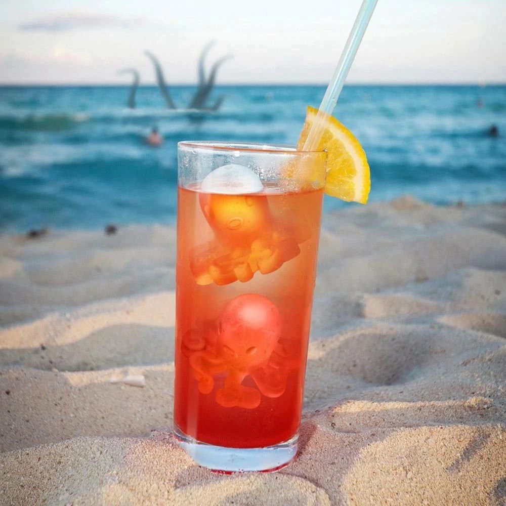 - Ice mold makes up to four octopuses to set in tumblers, drinking glasses, and water bottles