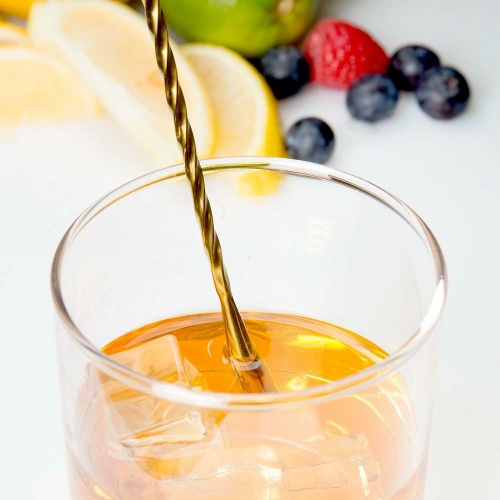 Martinis. Manhattans. Old Fashioneds. Whiskey Sours. Mixing the classics for your cocktail-loving friends starts with reaching for classic bar tools from Barfly Mixology Gear by Mercer. Show your hand at smoothly mixing cocktails made to order or by the pitcher with the Mercer Barfly 19.6” Gold-Plated Classic Teardrop Bar Spoon M37014GD. Barfly’s beguiling bar spoon with the vintage design is made of a single piece of gold-plated stainless steel that won’t absorb stains or odors that could cloud the taste of fine spirits. This dual-use bar spoon has a precision-molded spoon on one end for accurate measuring, precise pouring, and gentle stirring; the other end is weighted with a classic “teardrop,” a perennial favorite of professional bartenders for providing balance and easy mixing. The elegant spiraled handle is designed with a twist to gently blend ingredients without bruising, and at a stately 19.6” long, it’s perfect for tall drink glasses and pitchers. With such alluring looks and expert performance, Barfly Mixology Gear by Mercer can turn your kitchen into the neighborhood’s trendiest cocktail lounge.