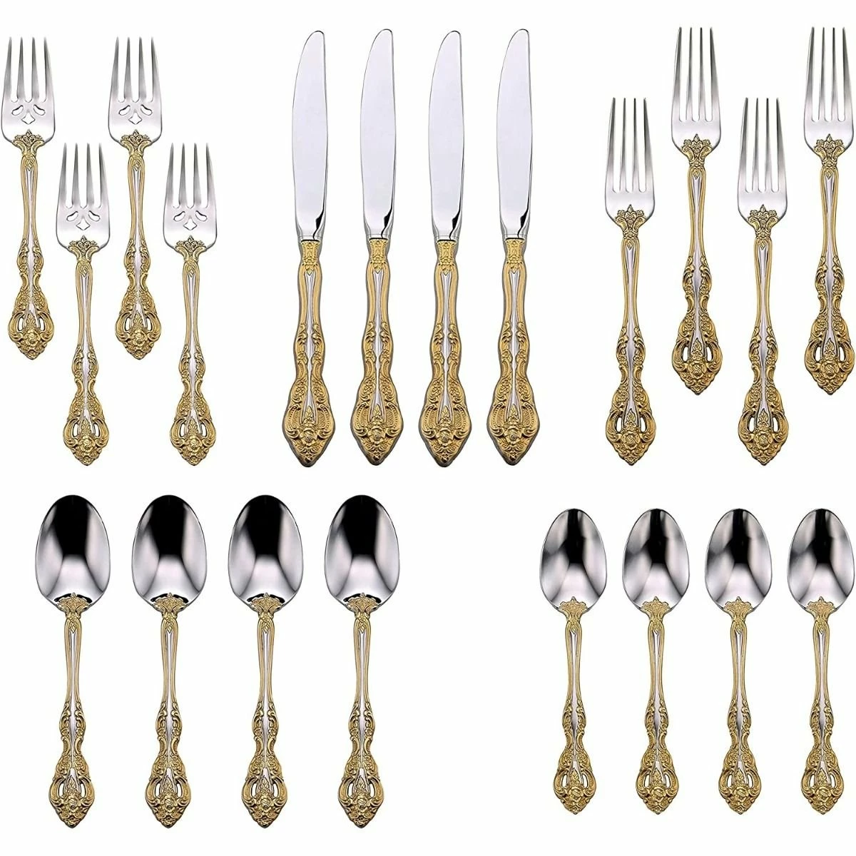 Oneida 18/10 Stainless Steel 20-Piece Flatware Set (Golden Michelangelo) Features: