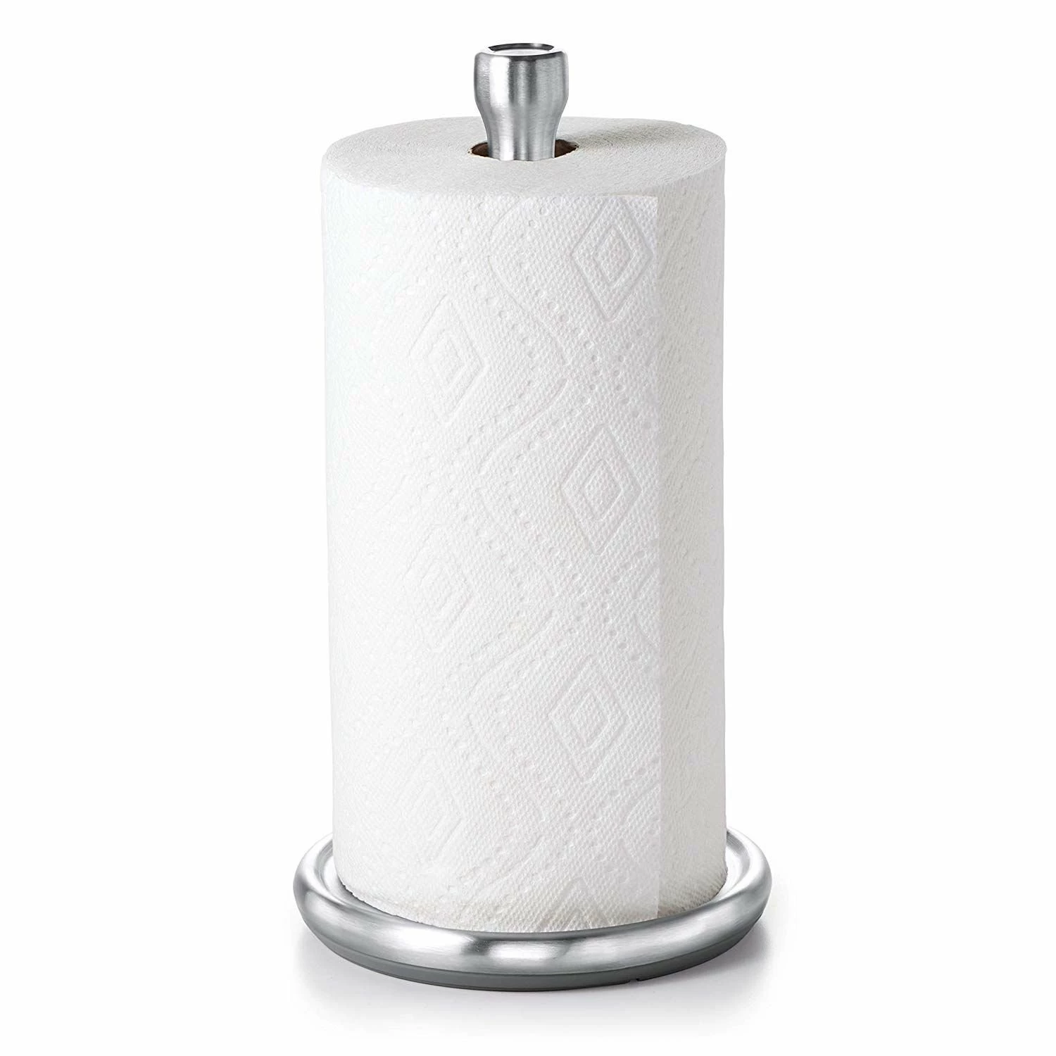 Keep your paper towels ready to take on accidental spills and messes with the stylish OXO Steady Paper Towel Holder! This stainless steel paper towel holder can fit both small and jumbo-sized rolls and is designed with extra-smooth rotation for easy one-handed tearing. With a weighted base that won’t slip while in use, this paper towel holder has a convenient die-cast knob at the top to keep your paper towel roll in place. Plus, you can use the nifty knob for easy transport. For a sleek paper towel holder that’ll complement any kitchen décor, try the OXO Steady Paper Towel Holder today!